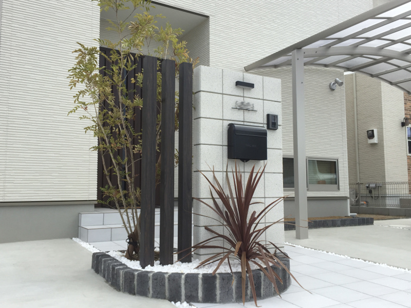 旦那様と奥様がこだわった白と黒を貴重とした外構と